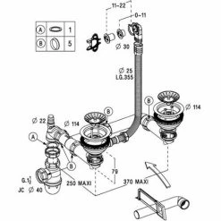 NICOLL Bonde Avec Plateau Inox 2 Bacs Communicants Pour évier Grès – Perçage Diamètre 60 Mm