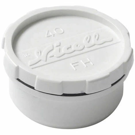 - Pièce de couleur blanche mâle Ø50 en deux parties munie d’un bouchon fileté étanche.