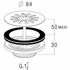 NICOLL Bonde PVC évier Grès/synthèse Avec Grille Inox Ø84 – Percage 60mm